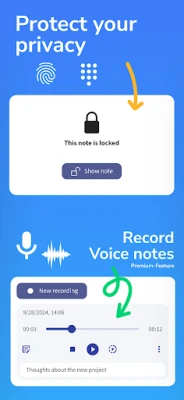 La gestion de vos contenus est simplifiée : déplacez, dupliquez ou restaurez des notes et des dossiers depuis la corbeille en toute facilité. La sécurité de vos données est une priorité, avec la possibilité de verrouiller l'application, des dossiers ou des notes spécifiques via un code PIN. Folino fonctionne parfaitement hors ligne et offre des options de synchronisation manuelle via Google Drive pour un accès multi-appareils, ainsi que des sauvegardes manuelles pour une tranquillité d'esprit totale. Pour ceux qui cherchent à enrichir davantage leur expérience, des fonctionnalités additionnelles sont disponibles via des achats intégrés : intégrez des images et des enregistrements audio à vos notes, personnalisez vos dossiers avec des icônes et des couleurs variées, et mettez en évidence vos notes avec des teintes distinctes. L'application supporte également le mode sombre pour un confort visuel optimal.