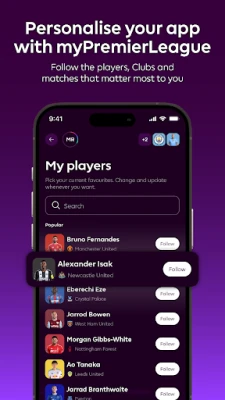 Personnalisez votre expérience grâce à myPremierLeague, où vous choisissez vos clubs, joueurs et matchs favoris pour un flux d'actualités, de vidéos et d'histoires sur mesure. Recevez des alertes intelligentes vous informant en priorité des compositions, des buts et des développements majeurs. Gérez votre équipe Fantasy Premier League avec une aisance inégalée, suivez vos points en direct tout en consultant les performances du jour, et participez aux formats Classique, Draft et Challenge depuis une seule interface. Pour une immersion sonore totale, Premier League Radio vous transporte au stade avec des commentaires et analyses en direct, où que vous soyez (sous réserve de restrictions territoriales).
