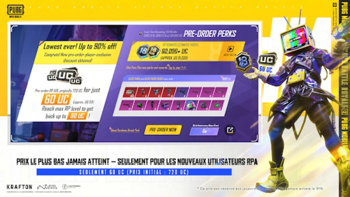Découvrez PUBG MOBILE, le chef-d'œuvre de Battle Royale épique original sur mobile. Plongez dans des combats intenses de 10 minutes avec une maniabilité fluide des armes. Explorez de nombreuses cartes et modes pour une expérience de survie palpitante, seul ou avec des amis. Tirez sur tout ce qui bouge et atteignez le sommet.