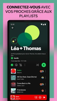 Même sans abonnement, Spotify transforme votre façon d'écouter. Accédez gratuitement à une vaste collection de musiques et de podcasts en ligne, et créez des playlists sur mesure pour chaque moment de votre vie, que vous pouvez ensuite partager avec vos proches ou développer en collaboration. Restez à la pointe de l'actualité musicale avec des sélections comme "Radar des sorties" et "Vendredi = nouveautés", et dénichez vos futurs coups de cœur grâce à "Découvertes de la semaine". De l'exploration des événements musicaux près de chez vous aux rétrospectives annuelles personnalisées avec Spotify Wrapped, chaque session d'écoute est une aventure. Profitez de cette richesse sur tous vos appareils compatibles, des enceintes connectées aux consoles de jeux, grâce à l'intégration fluide de Spotify Connect.
