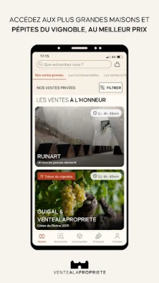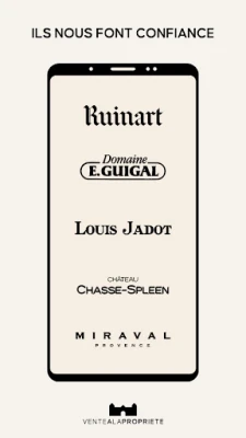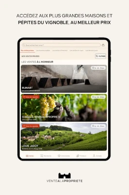 Découvrez VALAP, l'application mobile officielle de Ventealapropriete.com. Accédez facilement aux ventes privées exclusives de vins, champagnes et spiritueux. Profitez de sélections pointues et de prix imbattables directement sur votre appareil. Votre accès privilégié à des offres exceptionnelles du monde viticole.