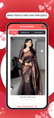 L'expérience utilisateur est notre priorité absolue. Naviguez en toute fluidité sur une interface intuitive, créez votre profil en quelques instants et échangez avec vos potentiels partenaires via notre messagerie sécurisée intégrée, où vous décidez quand et si vous souhaitez partager des informations personnelles. Avec Vivaha Divine, votre parcours vers l'amour est toujours à portée de main : entièrement optimisée pour les appareils mobiles, l'application vous garantit un accès constant à vos messages et nouvelles correspondances. Restez informé en temps réel grâce à des notifications instantanées pour ne manquer aucune opportunité de créer la connexion de votre vie.